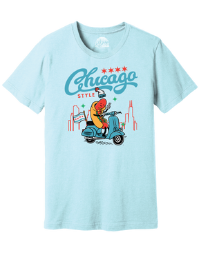 April '25 - Chicago Scooter Dawg T-Shirt - Small / Heather Ice Blue is backordered and will ship as soon as it is back in stock.